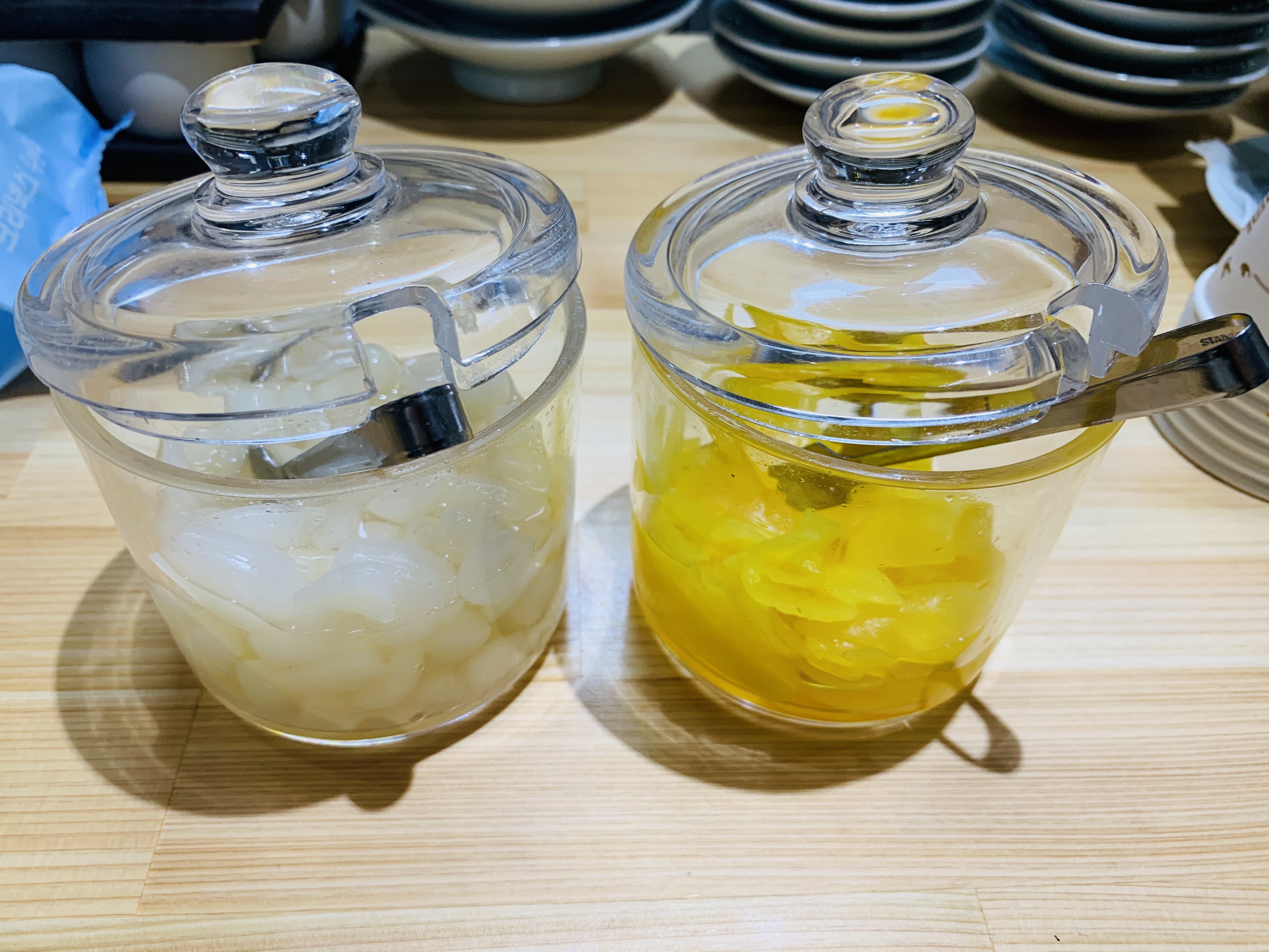 먹을만큼 덜어먹는 락교와 단무지.