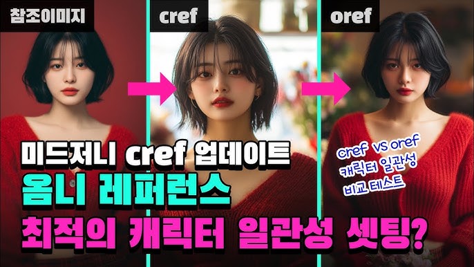 옴니 레퍼런스 이전에는 미드저니에서 캐릭터 레퍼런스(--cref)와 스타일 레퍼런스(--sref)와 같은 참조 시스템이 사용되었습니다. 그러나 이들은 각각 캐릭터 또는 스타일에만 초점을 맞춘 제한적인 기능이었습니다. 예를 들어, 캐릭터 레퍼런스는 캐릭터의 외형을 유지하는 데 사용되었고, 스타일 레퍼런스는 특정 스타일을 적용하는 데 사용되었습니다.