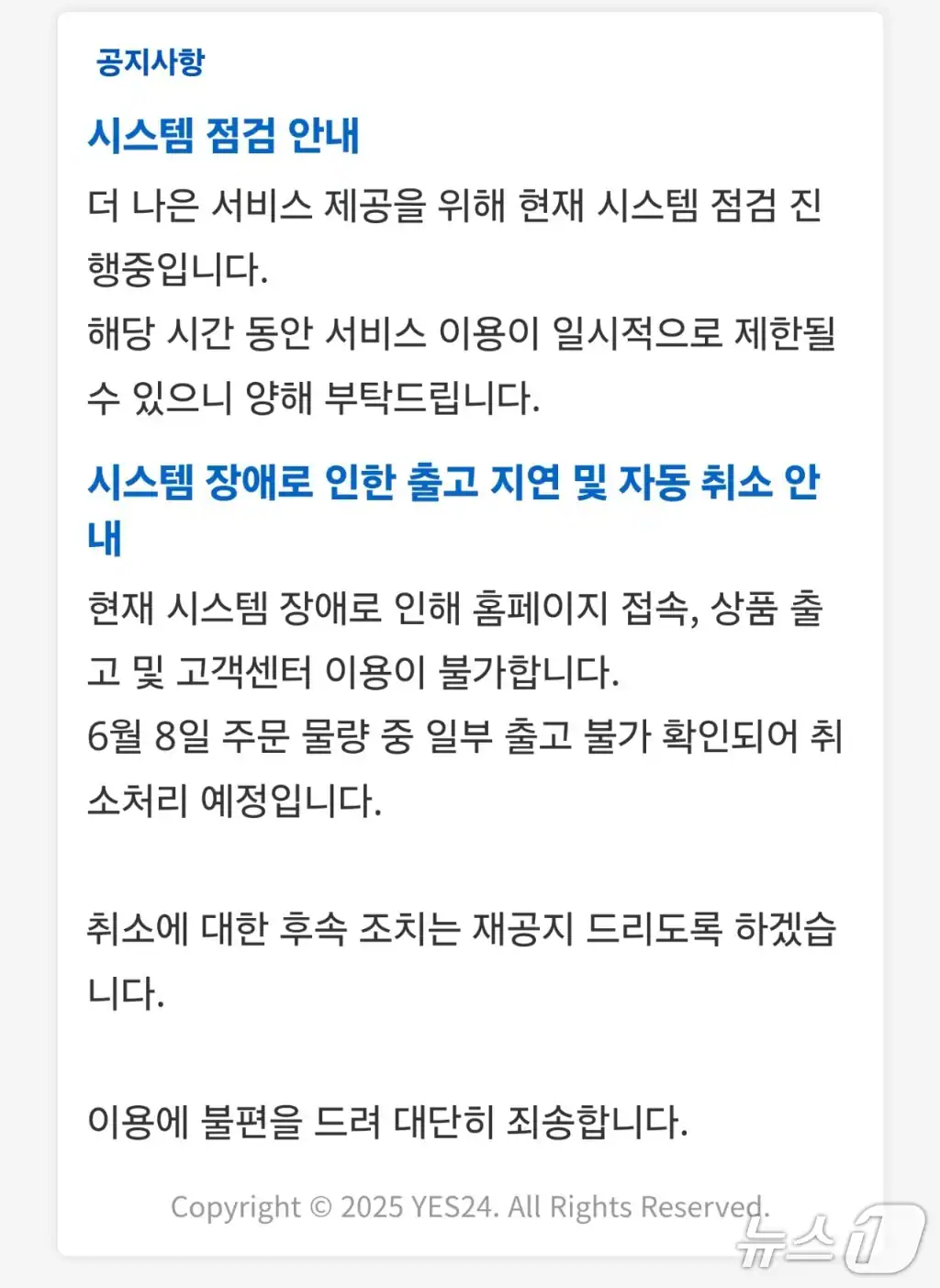 - 나무위키: 2025년 예스24 서비스 마비 사태 상세 기록