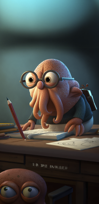 3D, disney character style, octopus teacher