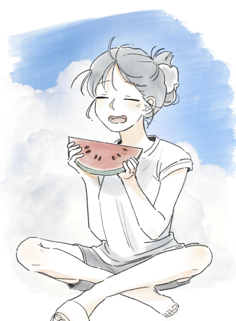 ['girl, watermelon, eat']